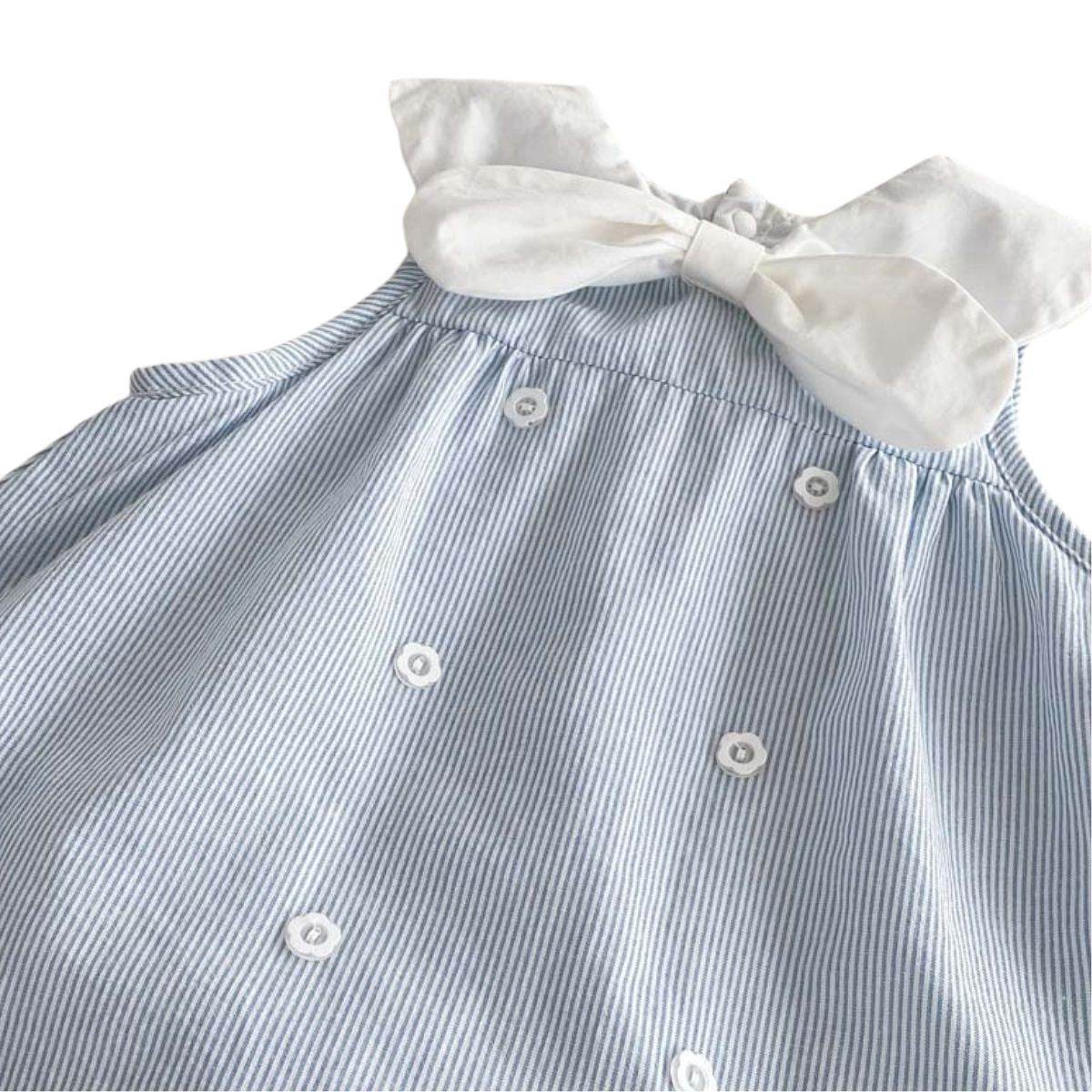 A charming bow-collar striped dress romper for stylish little ones